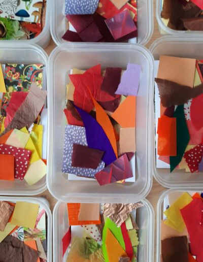 All weekly projects connect in with the seasons and make use of natural and recycled/ reclaimed materials. They allow children to explore their own creative approaches and enable them to develop making skills and an appreciation of different approaches to art making.